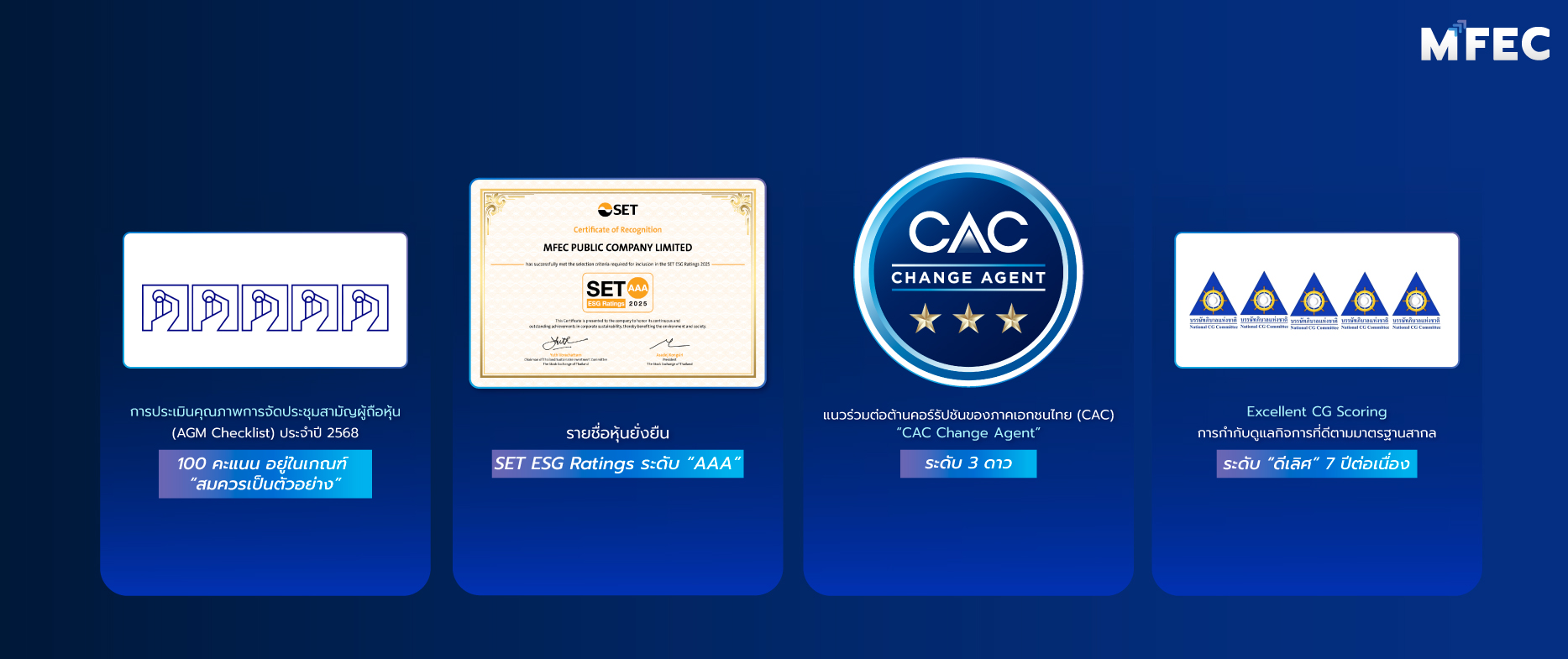 เรายึดมาตรฐานการบริหารจัดการองค์กรที่สูงสุด เปิดเผยข้อมูลอย่างโปร่งใสและมีความรับผิดชอบต่อทุกกิจกรรมของเรา เรามุ่งหวังที่จะสร้างความสัมพันธ์ที่ดีกับผู้มีส่วนได้เสีย ไม่ว่าจะเป็นนักลงทุน ลูกค้า หรือพันธมิตรทางธุรกิจ